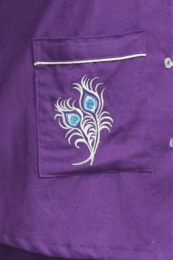 - Color: Deep amethyst purple with white piping and embroidery detail