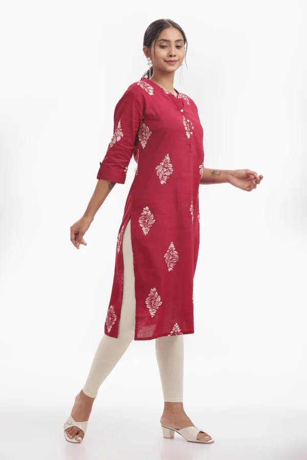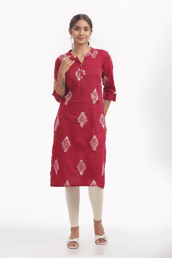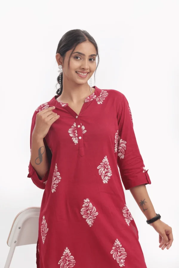 Embrace laid-back sophistication with this Maroon Cotton Printed Kurta, thoughtfully crafted in pure cotton for unmatched comfort and breathability. Featuring delicate handblock-inspired white motifs spread evenly across a rich maroon base, this kurta brings together tradition and contemporary charm effortlessly.