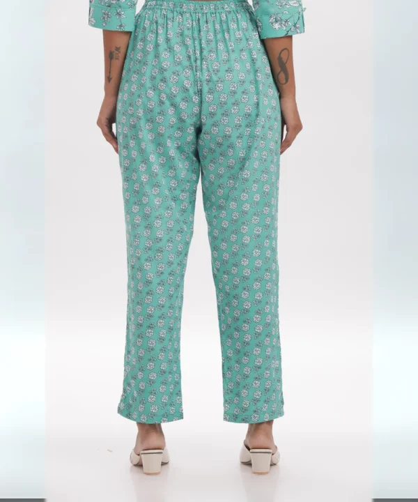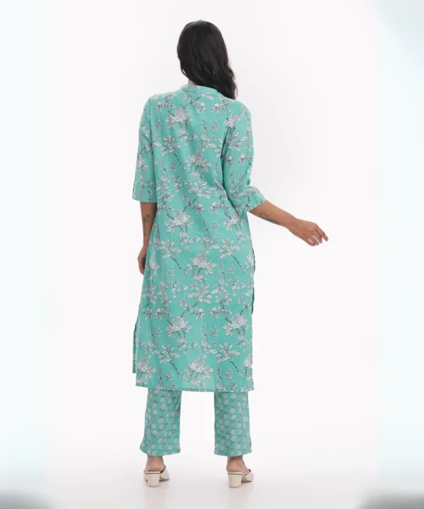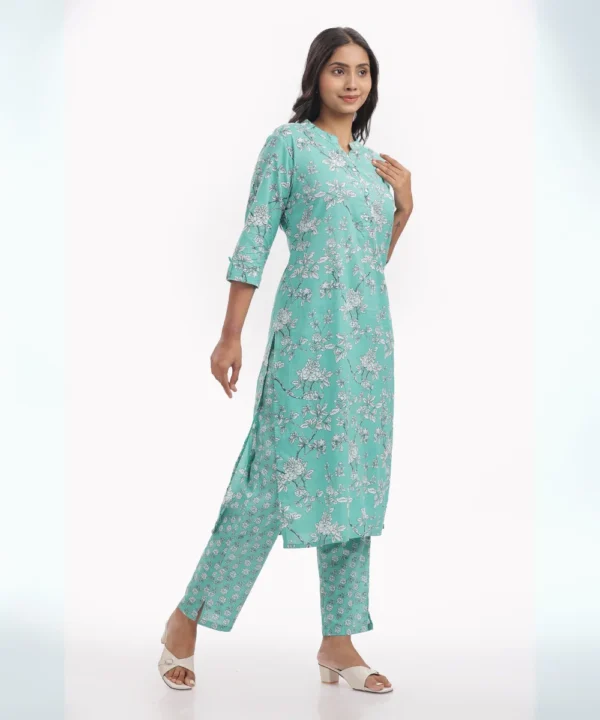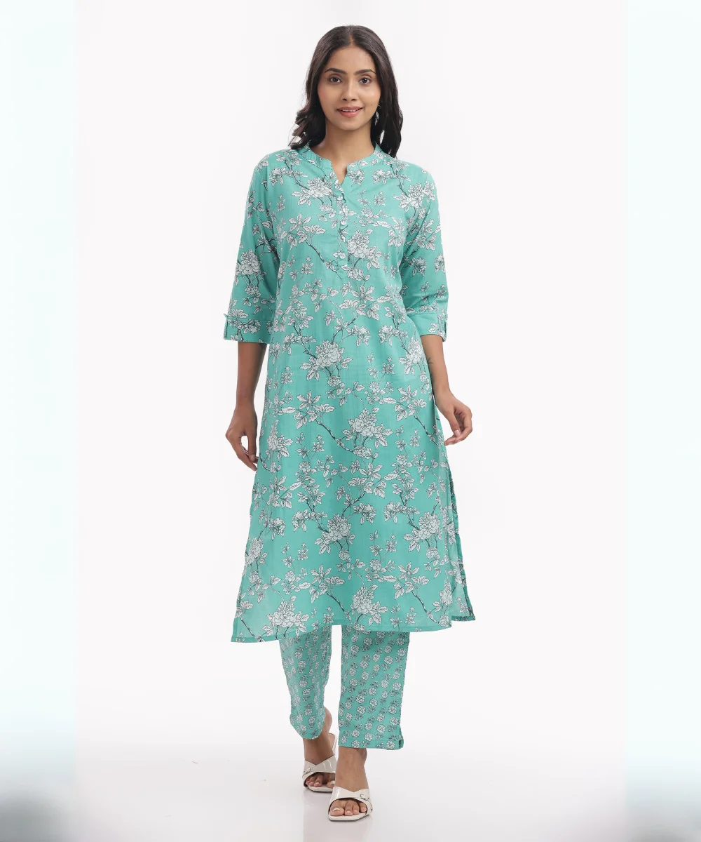 Mint Green Floral Printed Cotton Kurta Set for Women